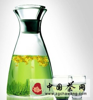 制作方法:芦荟去皮,放进煮沸的水中,然后加入菊花、红茶包和蜂蜜即可。