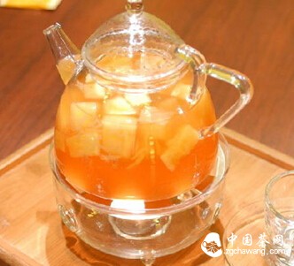 梨去皮切成小块与茶叶同泡饮服,有保肝、助消化、促食欲的作用。以冰糖、茶叶与梨同炖,不仅可祛痰、治哮喘、健胃润肺,而且对嗓子有良好的养护作用,很适合歌唱家和播音员饮用。 梨性味甘寒,用梨泡茶有助于消化,并有保肝促食欲的作用,有的用冰糖和茶一起炖梨,不仅可消痰降火,润肺清心,还适宜于咳嗽、烦渴失音患者。