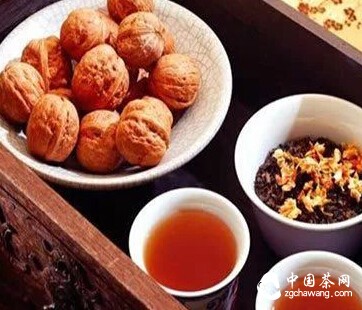 【制法】核桃仁碾成粉,与绿茶、白糖一起,用沸水冲泡5分钟。