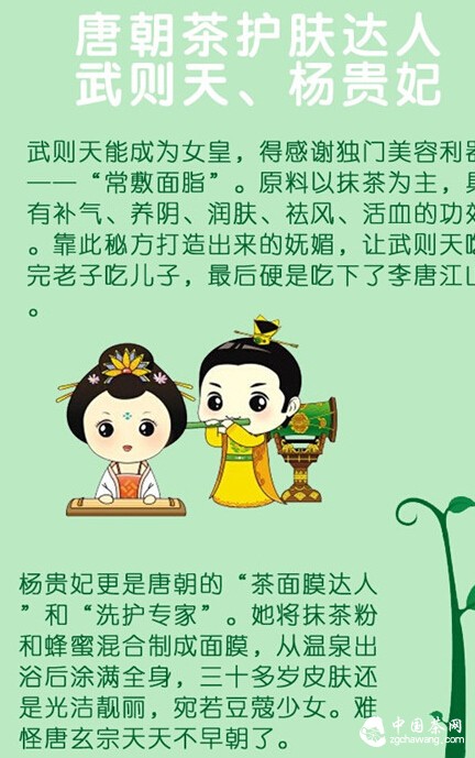 茶,作为世界第一大饮料,饮用的保健养颜功能,早已经被世人所熟知。近十几年来,茶护肤也开始风靡世界,很多国际大牌化妆品都推出茶护肤系列产品,大受欢迎,茶护肤开始风靡世界!其实茶护肤最早就是发源于中国哦,从古代开始一直备受女子追崇,连武则天和杨贵妃都是它的茶贵妃的粉丝哦,今天就带茶友们认识下茶护肤的前世今生!