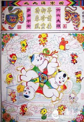 最雅致的九九消寒图是作九体对联。每联九字,每字九划,每天在上下联各填一笔,如上联写有“春泉垂春柳春染春美”;下联对以“秋院挂秋柿秋送秋香”,称为九九消寒迎春联。然而,不管哪种九九消寒图,在消磨时日、娱乐身心的同时,也简单记录了气象变化。据说有经验的老人,还能根据九九消寒图,推测出这一年的雨水多寡和丰歉情况。