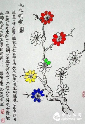 元朝杨允孚在《滦京杂咏》中记载:“试数窗间九九图,余寒消尽暖回初。梅花点徧无余白,看到今朝是杏株。”