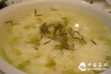 方法:蛋羹烧好后,上投绿茶即可。