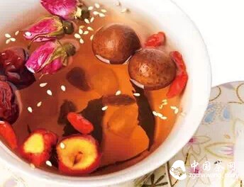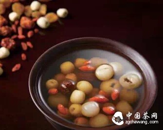 原料:枸杞5g、龙眼肉3g、绿茶3g、冰糖10g。