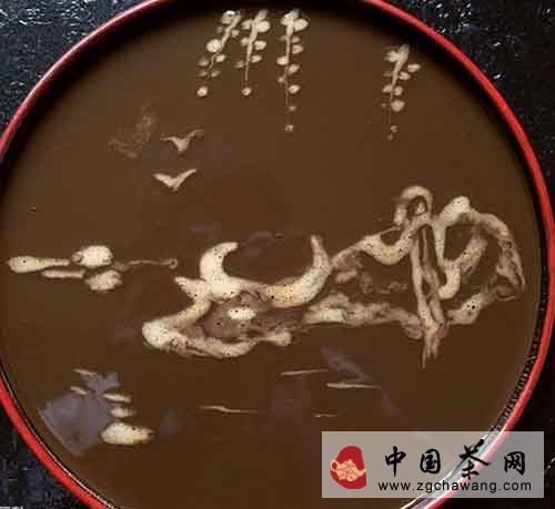 古人不甘寂寞,用茶汤表面上的泡沫来表现中国水墨画,渐渐的形成了一种艺术,称之为“分茶”。