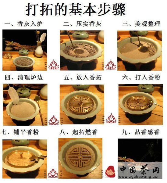 2、打籇。将香篆模轻轻的平放在铺好的炉灰上,用香匙将香粉填在模子上。中间轻轻晃动一下模子,然后填满,轻轻向上提起模子。这时心要静,气要沉,要尽量避免印出来的香篆散掉。