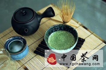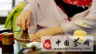 在点茶时,先要净碗,而后煎水,将研细的抹茶放入茶盏。