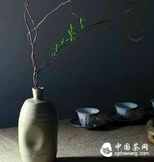 插花,是指人们以自然界的鲜花、叶草为材料,通过艺术加工,在不同的线条和造型变化中,融入一定的思想和情感而完成的花卉的再造形象。茶席中的插花,非同与一般的宫廷插花、宗教插花、文人插花和民间插花,而是为体现茶的精神,追求崇尚自然、朴实秀雅的风格。其基本特征是:简洁、淡雅、小巧、精致。鲜花不求繁多,只插一两枝便能起到画龙点睛的效果;注重线条,构图的美和变化,以达到朴素大方,清雅绝俗的艺术效果。