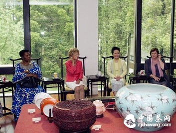 在这次的青奥会上,我国第一夫人彭丽媛带领外方领导人的夫人们伴随悠扬古琴声,一边品茗,品味中国茶文化,享受着一方雅事。