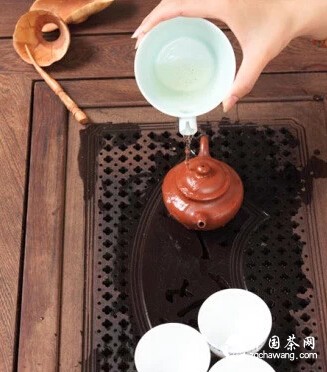 将沸水倒入壶中,让水和茶叶适当接触,然后又迅速倒出。目的是为了把茶叶表面的不清洁物质去掉,还有就是把没炒制好的茶叶过滤掉。
