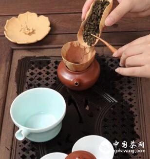 把茶叶放到器具里,也就是放茶过程到茶壶里,名字叫的好听,程序简单,表演可以适当加入花式,更具有茶韵。