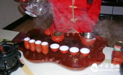 就是把茶叶器具都用开水冲洗一次,目的也是为了卫生清洁,同时给茶具预热,这样出来的茶的味道更香,将沸水倾入紫砂壶、公道杯、闻香杯、品茗杯中,也有朋友说这叫洁具提温。