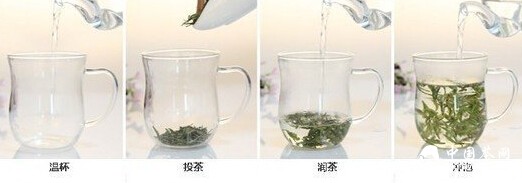 1、取杯温烫(玻璃杯、盖杯或者白瓷杯皆可 )。用热水温暖茶杯,即可以清洁茶同时可以提高茶杯的温度,以热水将被沿杯身转2圈,充分润杯,倒掉被里的水。