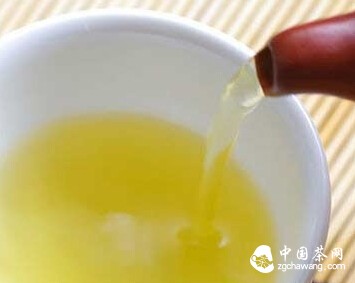 3、加水,最好采用从高冲泡的方法,水冲下来,让茶叶在杯中下翻动,促使茶汤均匀。