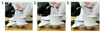 1-3.温杯:用75~85℃的开水,冲淋陶瓷盖碗,使其充分均匀受热。