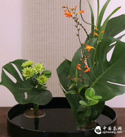 盘花的特点是盘器较浅,但器面广,可取多点插作,也可欣赏水面。