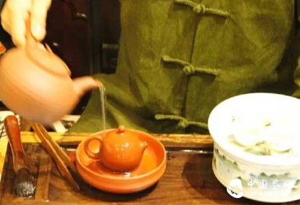 【贵妃淋浴】装壶前先用沸水烫壶,喻之“贵妃淋浴”。