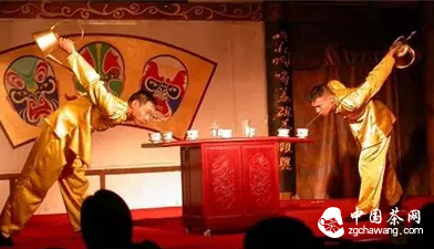 尽杯谢茶:起身喝尽杯中之茶,以谢山人栽制佳茗的恩典。 有些纯属艺术夸张,于茶本身的滋味无关,但随着生活好过了,欣赏表演也属于业余消遣。
