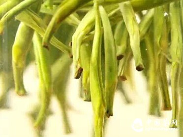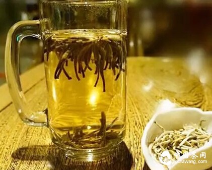 (3)置茶用茶匙轻轻地从茶叶罐中取出君山银针约3克,放入茶杯待泡。(4)高冲用水壶将70℃左右的开水,利用水的冲力,先快后慢冲入茶杯,至1/2处,使茶芽湿透。稍后,再冲至七八分杯满为止。为使茶芽均匀吸水,加速下沉,这时可用玻璃片盖在茶杯上,经5分钟后,去掉玻璃盖片。在水和热的作用下,茶姿的形态,茶芽的沉浮,气泡的发生等,都是其他茶泡时罕见的,这是君山银针茶的特有氛围。