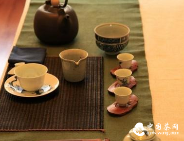 茶具组合是茶席设计的基础,也是茶席构成因素的主体。茶具组合的基本特征是实用性和艺术性相融合。实用性决定艺术性,艺术性又服务于实用性。因此,在它的质地、造型、体积、色彩、内涵等方面,应作为茶席设计的重要部分加以考虑,并使其在整个茶席布局中处于最显著的位置,以便于对茶席进行动态的演示。