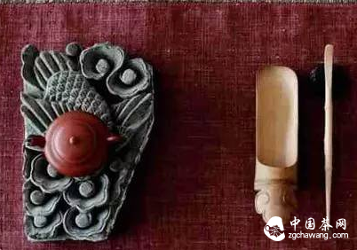 竹做茶则,雕花瓦当做壶承,实在是别致。
