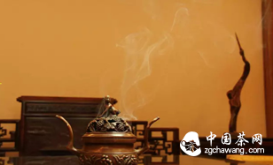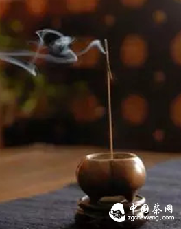 焚香,可用在茶席中。它不仅作为一种艺术形态融于整个茶席中,同时以它美妙的气味弥漫于茶席四周的空间,使人在嗅觉上获得非常舒适的感受。