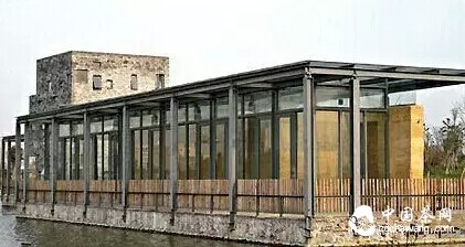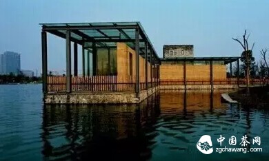 茶室采用合院形态,其屋面由钢构玻璃建造,南面有一小荷塘,经一小桥直入。这水上的茶室让传统和现代完美的结合在一起,坐在里面品茶一定别有滋味了~