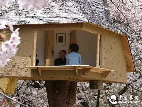 当然,客人要到达茶室必须通过靠在树干上的梯子,树干则是在附近山上砍伐的。爬梯子一半以后要脱去鞋。茶室内部很简单,只有石膏墙和席子,爬梯时的冒险感觉在这时瞬间换成了一种平静,更适合于体会茶艺。