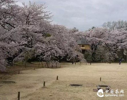 由一根树干从茶室地板贯穿至屋脊之上,采用褶状的铜皮浪板屋顶,使其外形有古朴的视觉感。在这样的高度下欣赏着落雨缤纷的樱花,瞭望整片花林,连喝的茶都带着浪漫的情怀和悠然的古韵,实在是无法用言语表达的美。