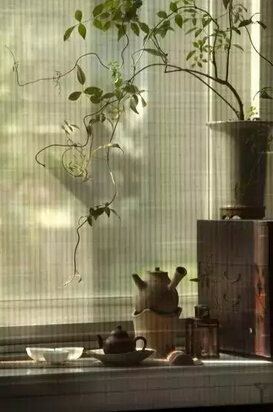刻意会让空间缺少跳跃动感,所以精心的随意要花费功夫,有线条的植物会让空间有动感。原木的色泽不会统一,因为大自然是随机的。茶具配件过多追寻花样奇巧,而错过枯木和苔草,瓷器和紫砂。是以散漫理之,可得佳境也。不要认为茶室都很有大师范,意境悠远。只要空间合理自己喜欢,未尝不是一处构合得宜,或征清赏的佳所。