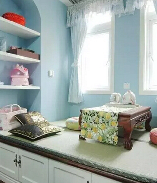 一间小茶室,利用阳台、飘窗上的空间,合理规划,不但让居室空间变大,而且让空间多元化。不需要昂贵和华丽,地台,草垫、榻榻米朴素自然。