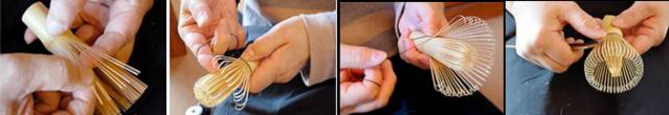 为了解决这个问题,茶筅的制作技术也不得不流出国外,委托生产。但因大量生产,工人缺乏世代相传的精神境界,在很多细节上明现出技术差异。只要看看筅穗的间距是否均等,筅穗尖部的弯曲状态是否平均便可断出良莠。