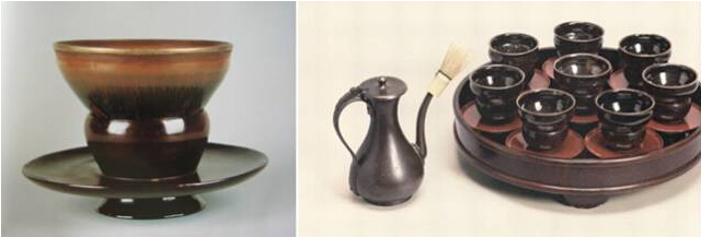 不在客人面前点茶也就不必担心搅动方式及力度的大小,但天目茶碗的造型特征为倒三角的斗笠型,口大底小壁斜直,按照现代人体工学的角度审视,这样的内空间构造显然使得茶人用茶筅做横向搅拌动作时受到了限制,非下苦功而不会得丰泡。