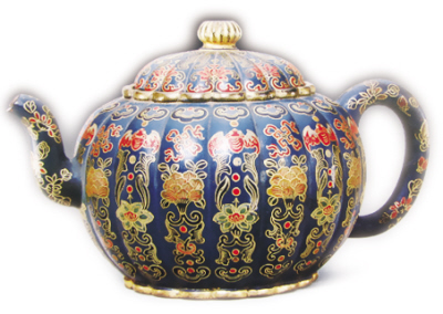 宜兴窑紫砂绿地描金瓜棱壶 清乾隆