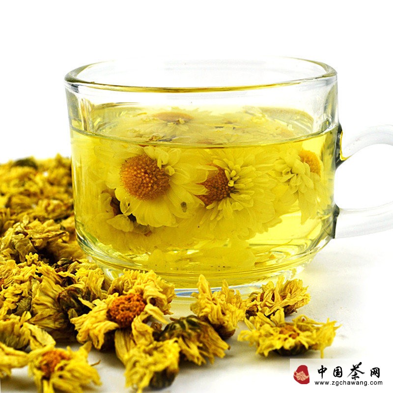 菊花茶是使用菊花为原料制成而成的花草茶。麻城福田河的福白菊、浙江桐乡的杭白菊和黄山脚下的黄山贡菊比较有名。 菊花为菊科多年生草本植物,是中国传统的常用中药材之一,主要以头状花序供药用。据古籍记载,菊花味甘苦,性微寒;有散风清热、清肝明目和解毒消炎等作用。现代医学也研究证实,菊花的功效与作用:具有降血压、消除癌细胞、扩张冠状动脉和抑菌,长期饮用能增加人体钙质、调节心肌功能、降低胆固醇,适合中老年人和预防流行性结膜炎时饮用。对肝火旺、用眼过度导致的双眼干涩也有较好的疗效。菊花茶在全国各地几乎随处可见,菊花茶是我国的十大名茶之一,饮用菊花茶有很高的营养价值,并且菊花茶是无污染的。
