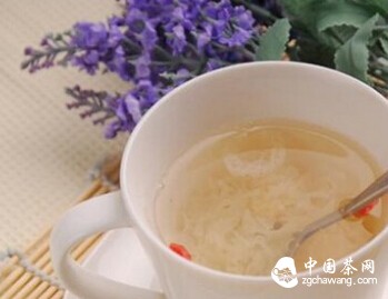可选用银耳20克、茶叶5克、冰糖20克,先将银耳洗净加水与冰糖炖熟,再将茶叶泡5分钟后加入银耳汤里,搅拌均匀服用。