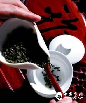 桂花乌龙茶的冲泡步骤1 将适量的茶叶放入茶碗中。