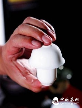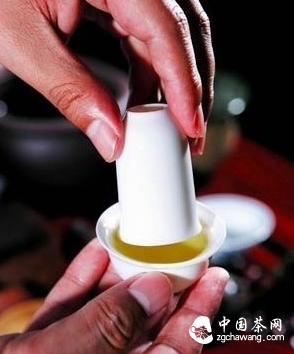 6.快速翻转,茶被转移到小杯中,取出闻香杯。