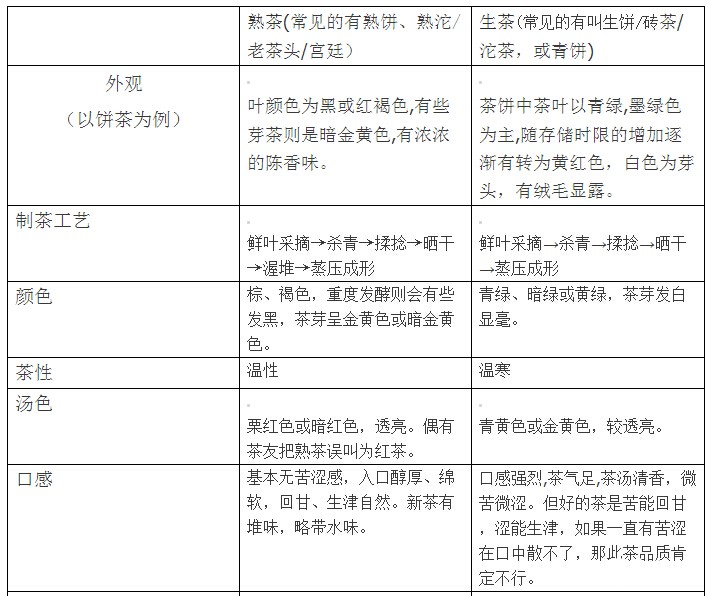 (5)生茶与熟茶的区别之“口感”