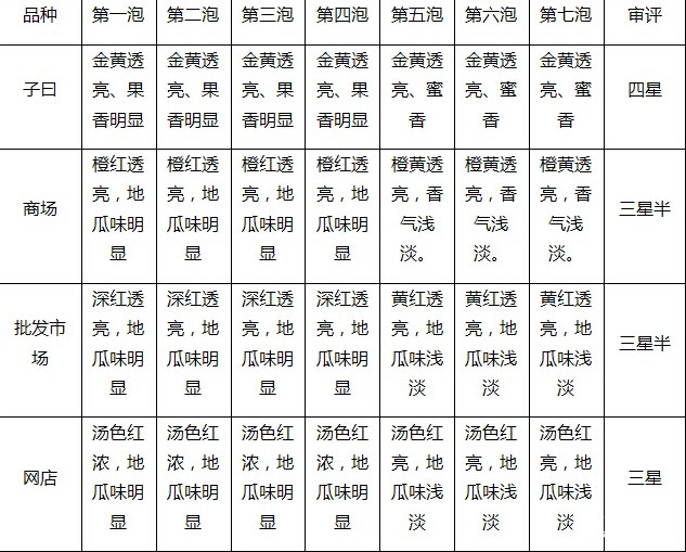 正宗的金骏眉都能冲泡七泡以上,并且汤色及口感比较接近,因此,在审评汤色和口感环节,以七次冲泡为基础上综合审评。