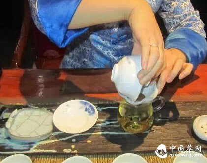 3、单边定点注水:这样的注水方式,令茶仅有一边能够接触到水,茶水在注水的第一时间溶合度较差,单边定点注水的点若在盖碗壁上则相对于在盖碗和茶底之间的点要融合得稍好一些;