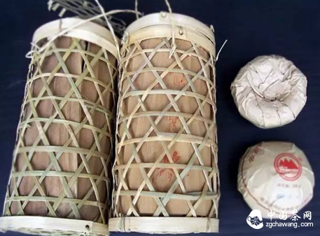而通常在包装时,每5个成品用竹箬包裹,加以竹篾捆绑成一坨一坨的,“沱茶”也可能因此得名。总之,古时茶商为了方便长途运输和长期储存,发明了这种形式独特、紧实牢靠的制作工艺,很有创意。