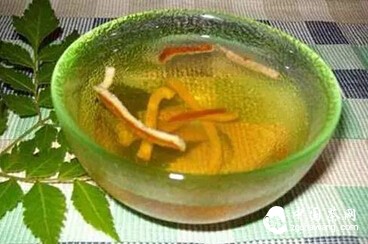 取桑叶、白菊花各10克,甘草3克,放入锅中稍煮,然后去渣叶,加入少量白糖搅匀即可。有助于散热清肺润喉,清肝明目,对风热感冒也有一定疗效。