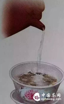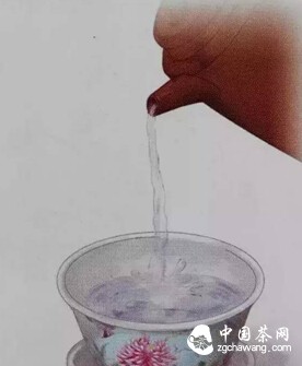 以绕圈方式将水注入盖碗内,使每片茶叶都得到充分滋润、受热。