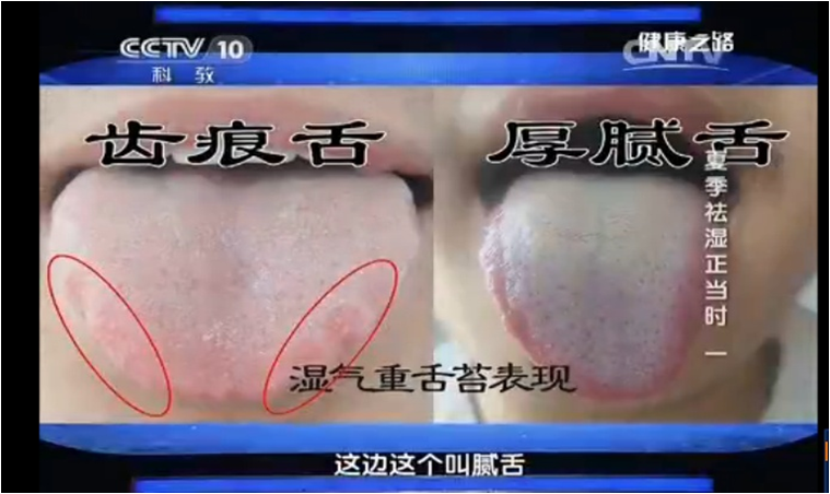 舌头中医一般叫舌苔,望舌头就是观测舌苔。常见湿气重的舌苔,主要是舌苔腻。舌头两旁有齿痕,说明体内有湿了。