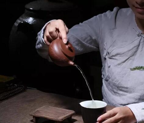 倒茶水时要将另一手指按在壶钮或壶盖上,动作不可过大。倒茶的过程中壶不离手,有很多时候掉壶盖就是在倒茶的时候发生的。切忌模仿卖壶商人玩的那些盖不掉、盖嘴倒立等小花样,这些都是骗人的小把戏,别一不小心就把爱壶给毁了,得不偿失。
