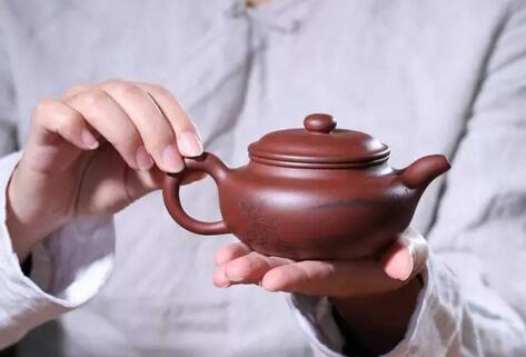 紫砂壶一旦沾染到油脂,就容易发出“贼光”,易养出带有花斑的壶。壶体的内外均不可沾染到油脂。每次茶事活动,都需净手弄茶,一是使茶免受异味污染;二是茶壶能得到良好的保养。在喝茶的过程中,用洁净的手对砂壶摩挲、把玩是非常必要的。