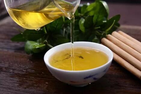 茶叶泡完后,新茶茶底绿中带黄,显鲜嫩,而隔年茶茶底偏黄,没有鲜嫩感。
