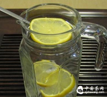 第二步:在玻璃杯中放入冰块和柠檬(也可以挤入柠檬汁)