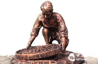 把杀青后的茶叶包在特制的布里,利用“手脚”把整个茶叶紧包成球状。如图:从这个环节开始其目的就是制作外形和颜色。